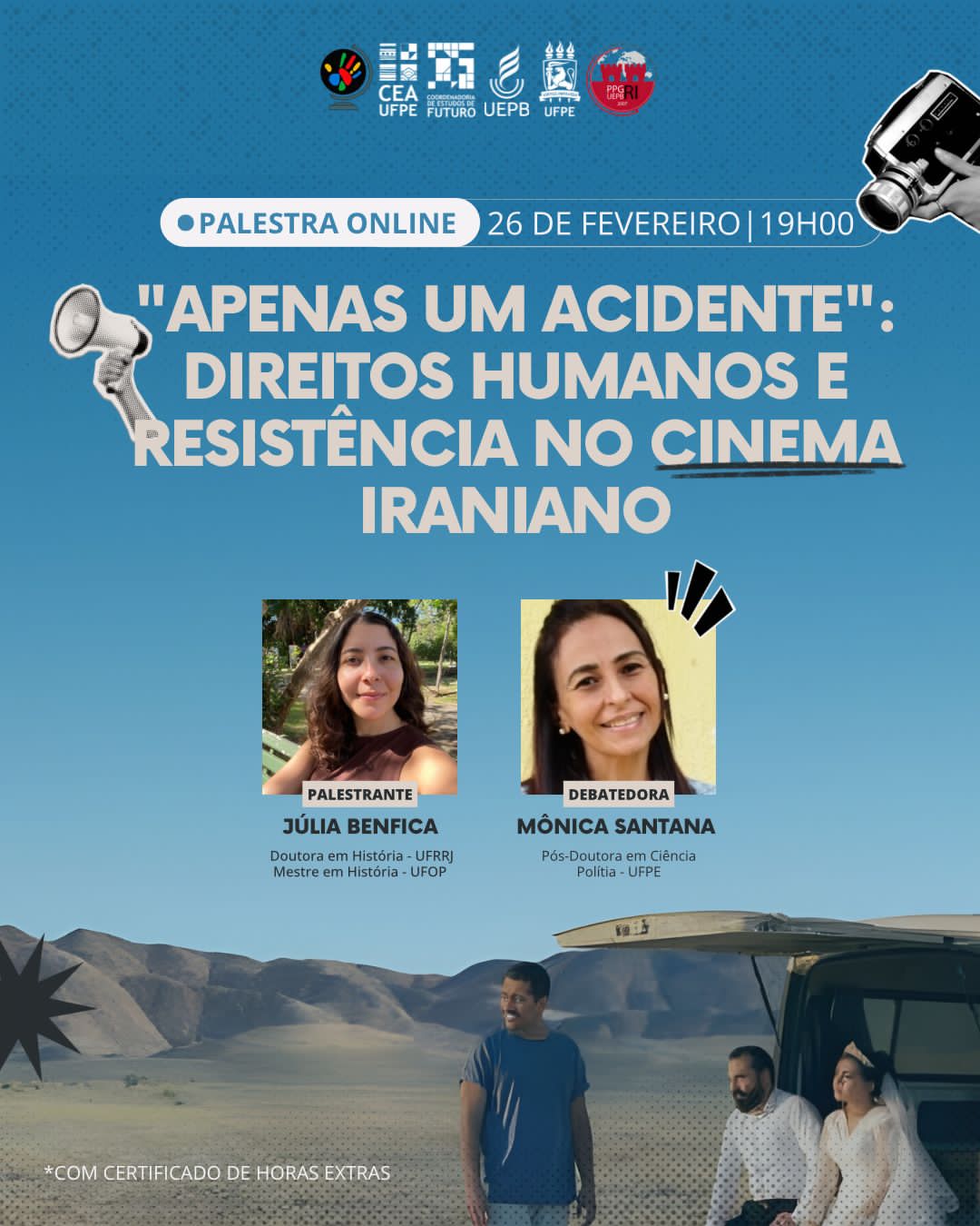 A Curadoria de Migrações e Direitos Humanos do Centro de Estudos Avançados da Coordenação Futuro (CEA/UFPE) convida para a comunicação “Apenas um Acidente: Direitos Humanos e Resistência no cinema iraniano”.
